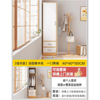 خزانة ملابس بشكل طولي مع جرارين باللون الأبيض والخشبي jo-33