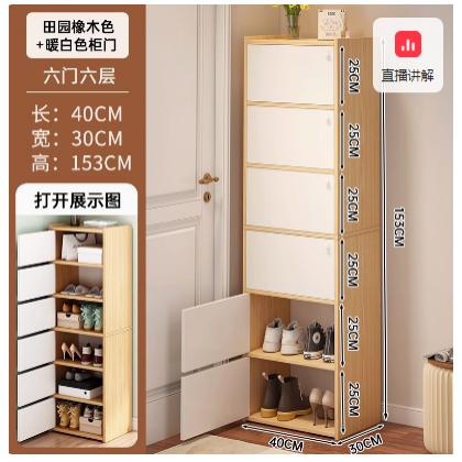 خزانة احذية بتصميم طولي باللون الابض والخشبي jo-42